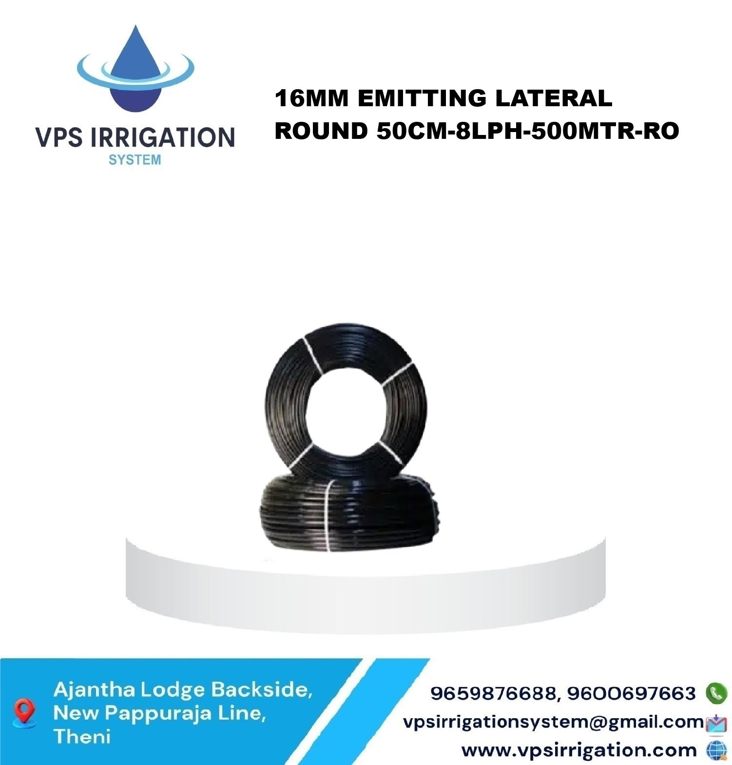 Lateral pipes are usually 13-32 mm diameter. Emitters or drippers are devices used to control the discharge of water from the lateral to the plants. They are usually spaced more than 1 metre apart with one or more emitters used for a single plant such as a tree